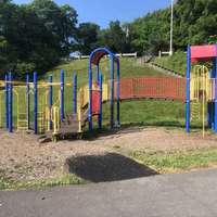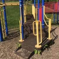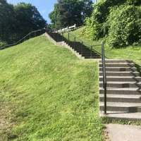 Stairs leading down to playground from parking lot