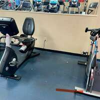 Spin classroom access to the recumbent bike, directly to the right of entering the room.