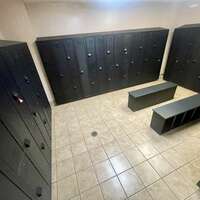 Lower lockers are accessible and locker doors can be opened without grasping. Latch can be lifted open with forearm with ease.
